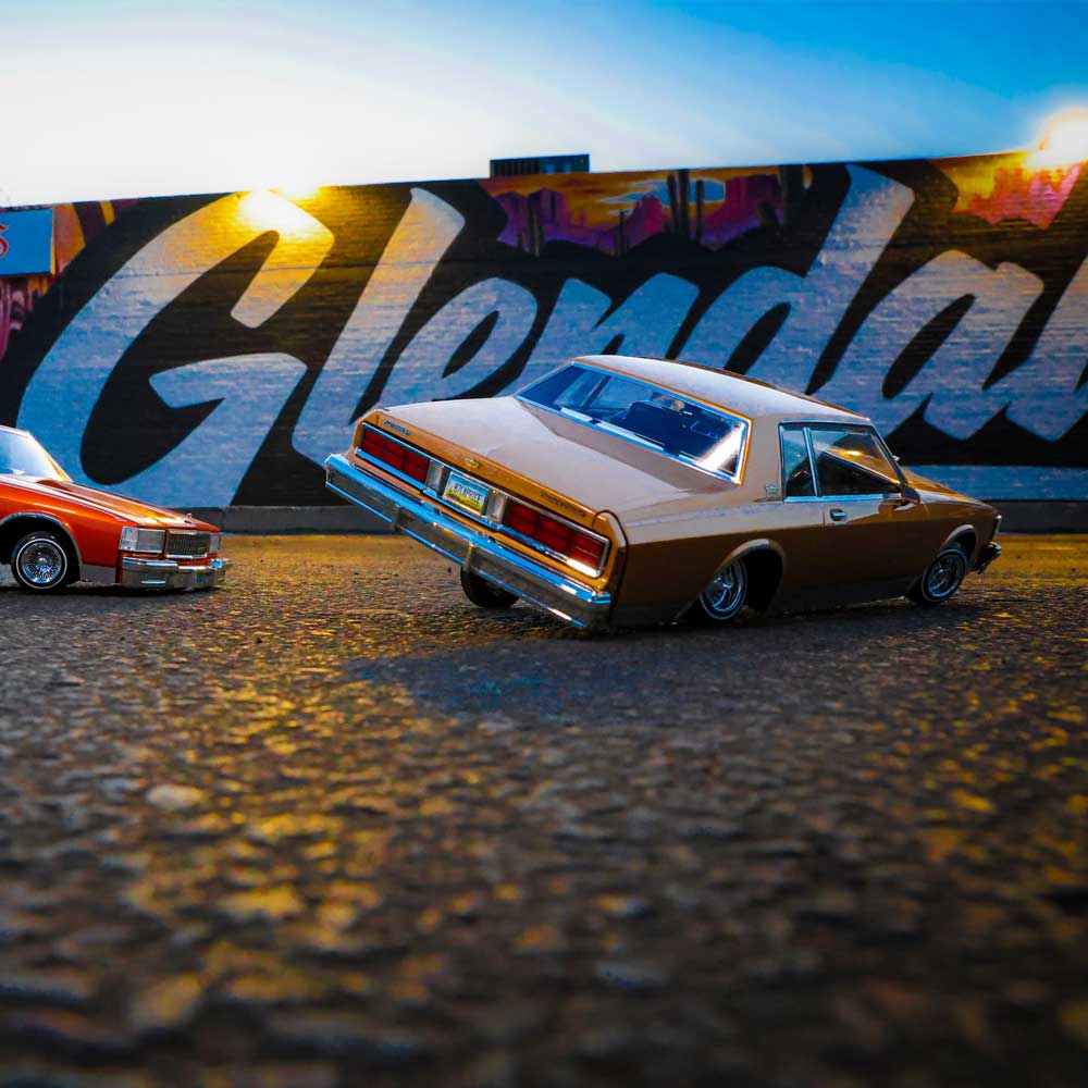 The Caprice Classic, especially from the late '80s, is often chosen for its solid frame, which provides a strong foundation for hydraulic or airbag systems, offering a sturdy backbone for the rigorous effects of hopping. Its large size acts as a canvas for impressive paint jobs, custom interiors, and the installation of unique rims—all key elements of lowrider style & culture. With such a strong presence in the post-'80s lowrider community, the Caprice Classic was destined to be on our design list of 1:10 scale Redcat hopping lowriders and is carefully recreated with incredible detail and performance.