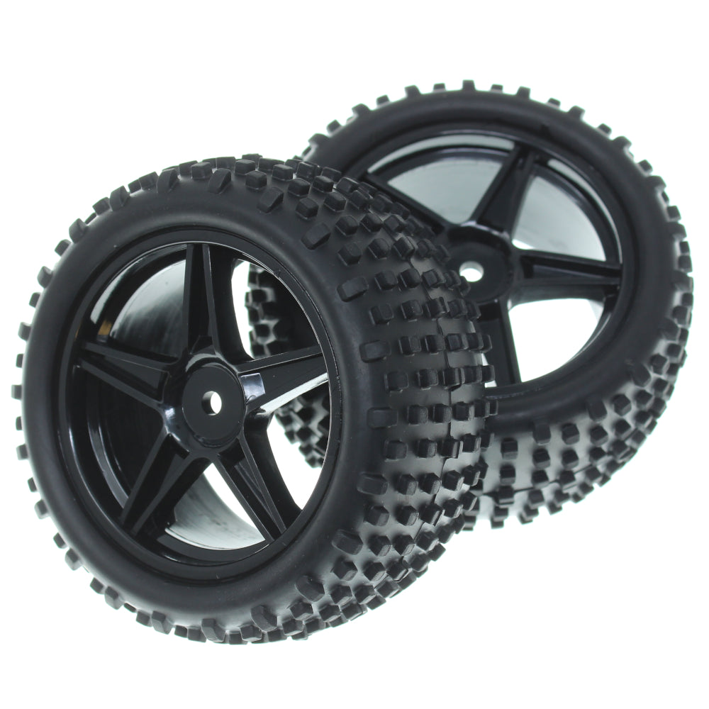 Pre-Mounted 1/10th Buggy Rear Tires and Wheels (Black)(1pr)